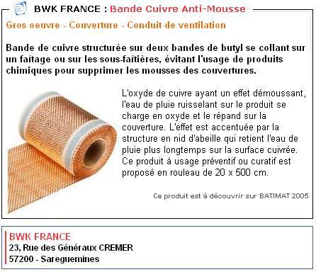 BWK France apresentou a Bande Cuivre anti-mousse, uma faixa de cobre estruturada