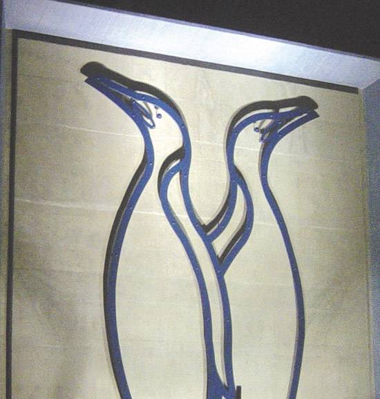 como marcas do parque, as esculturas de um tubarão e dois pingüins
