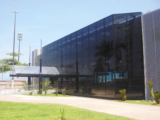 colocados vidros nas laterais das rampas de acesso ao novo bloco e na bilheteria,
