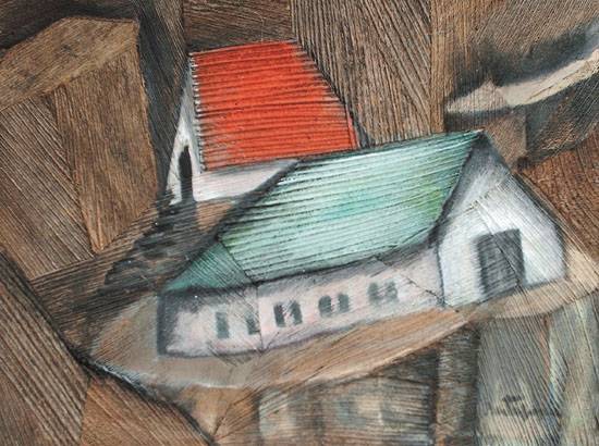 de pintura e palha de coqueiro sobre tela, no qual é possível