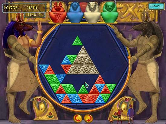 o jogador deve encher as urnas coloridas com os triângulos da mesma