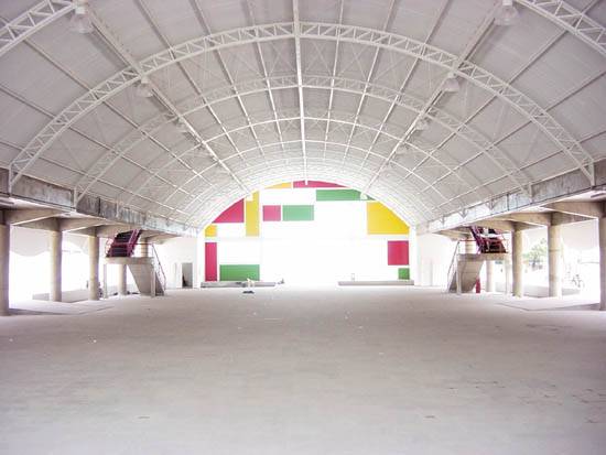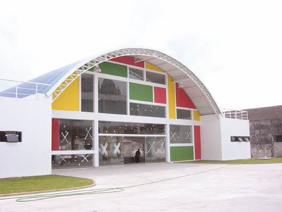 concreto colorido. A curvatura dos arcos da estrutura foi feita na própria