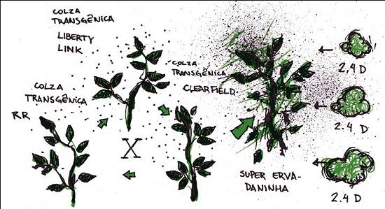 O problema canadense: cruzamentos sem controle entre variedades de canola (colza) Imagem: Cartilha