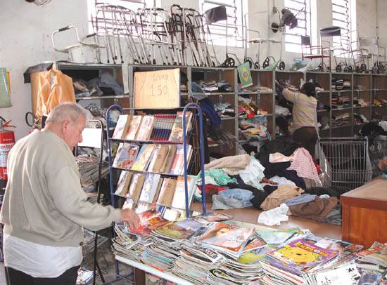 Trabalho voluntário – Corralo destacou que, além de funcionários, o Bazar da Casa do Sol funciona com o apoio de voluntários, que ajudam na triagem das doações, separando livros por temas, roupas de acordo com modelo e sexo.