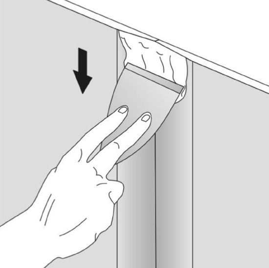 Quanto aos procedimentos, o tratamento deve ser feito em duas fases. Na primeira, aplica-se a massa e sobre esta a fita, que é recoberta por mais uma fina camada de massa. Espera-se a primeira demão secar completamente antes de aplicar a segunda. A secagem demora no mínimo 24 horas se as condições de umidade não forem elevadas e se houver boa ventilação. Essa espera é fundamental, pois, ao secar, a massa perde água e se retrai, gerando uma pequena depressão que será corrigida com a segunda demão. Depois de seca, lixamento para nivelar com a superfície das chapas, podendo receber a pintura ou outro acabamento.
