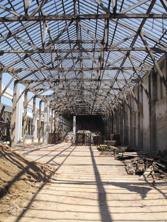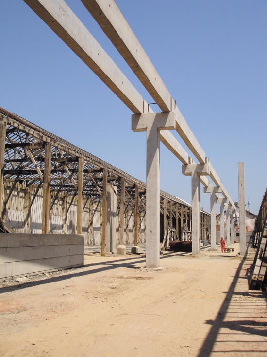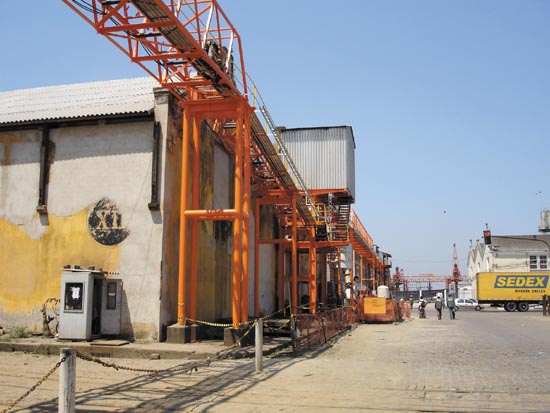 A reforma do armazém 12 está mais adiantada e será concluída em novembro/2006. Praticamente todo o piso está pronto. A estrutura central de concreto, com fundações, pilares e vigas, para receber o sistema de dalas, também já foi concluída. A do 17 será entregue em dezembro/2006. Toda a estrutura de concreto pré-fabricada está montada, ao passo que o telhado está sendo nivelado para receber as telhas. Em seguida será concretado o piso. A subestação, que fica no 17, está pronta para os trabalhos de elétrica. Em novembro/2006 têm início as obras dos escritórios no armazém.