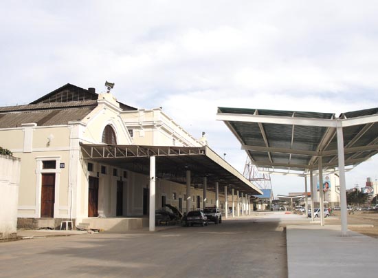Terminal Marítimo: o contraste do edifício antigo e a moderna cobertura para passageiros