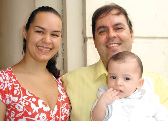 O simpático casal Tatiana e Maurício Cabral no grande dia do batizado de Matheus, em Santos Foto: Luiz Carlos Ferraz