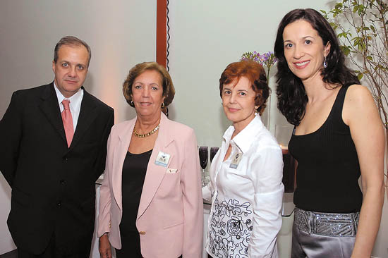 Ecos do Congresso da Apacos 2006, no jantar de posse da nova diretoria no restaurante Trebbiano, do L’Hotel, em Sampa: Cléo Furquim, de Jaú, o presidente eleito Ovadia Saadia, Andréia Antunes, gerente de marketing do L’Hotel, e Anna Denz, de Taubaté. Foto: Luiz Carlos Ferraz