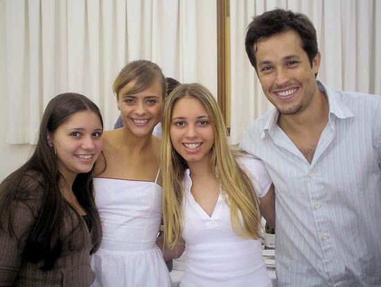 Juliana Silveira, entre as irmãs Amanda e Bruna Cheganças, e Roger Gobeth: jantar em prol do Educandário Anália Franco, Juliana contando as novidades após o sucesso de Floribela Foto: Sandra Netto