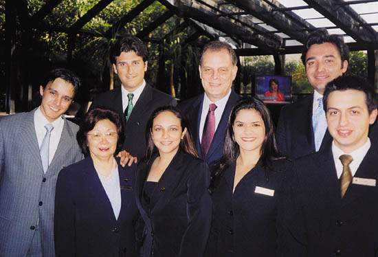 Jaime Valdes, diretor geral do Gran Meliá Mofarrej, em Sampa, apresenta seu novo time: na frente, Katsuko Hassunuma, Milena Freire, Telma Mendes e Denis Déssico. Atrás: Pedro Freire, Fernando Gagliardi, Valdes e Marco Leite Faria Foto: divulgação