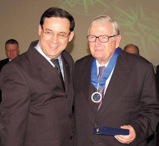| No evento em que a Federação Nacional das Agências de Navegação Marítima (Fenamar) premiou profissionais com a Medalha do Mérito Nacional do Agenciamento Marítimo, pela contribuição ao avanço do segmento no comércio internacional: