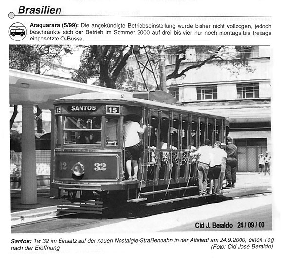 transportes públicos sobre trilhos Blickpunkt Strassenbahn, editada em Berlim em janeiro de 2001, que na página 131 registra o ressurgimento