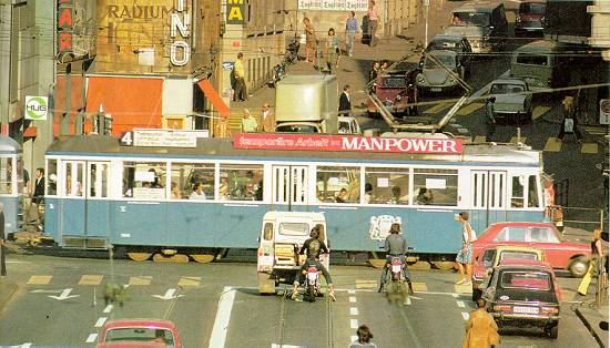 Bonde em rua de Zurique, cerca de 1970