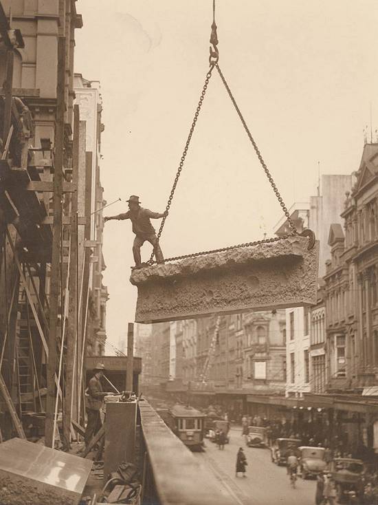 de um operário da construção de edifícios, em Sydney, cerca de 1930