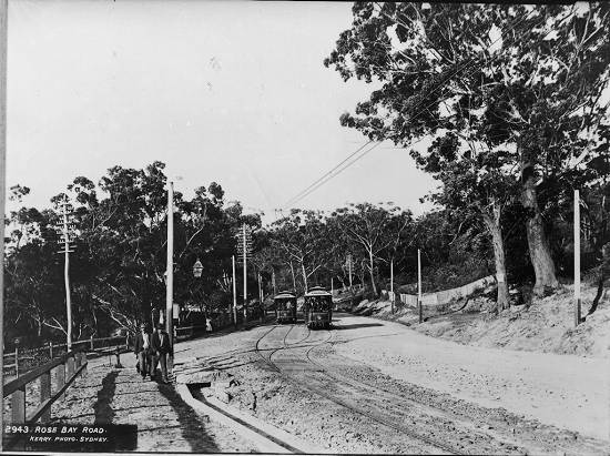 Bondes elétricos na Rodovia Rose Bay, em Sydney, cerca