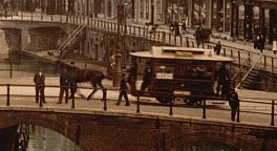 com um antiqüíssimo serviço de bondes com tração animal, visto nesta foto ainda do século XIX.