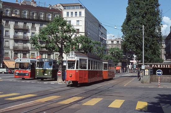 desvio, na década de 1980 na Rue de Genève. O reboque e o desvio não existem mais