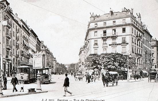 Bondes na Rue de Chantepoulet, por volta