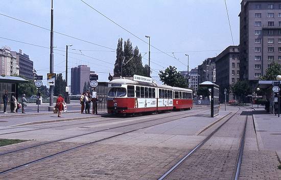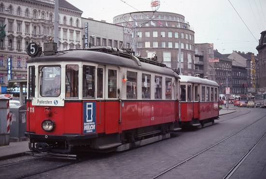 Austro-Hungaro, bondes elétricos circulam junto ao cais Francisco José (Quay Freancis Josseph), em Viena. A imagem foi erroneamente identificada