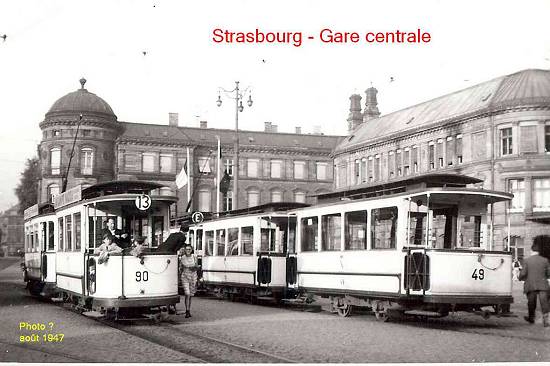 Bondes na estação central de Strasbourg, em agosto de 1947