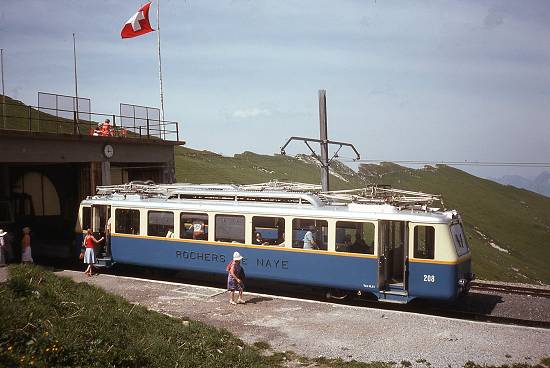 partem de Montreux, viajando 7,7 km até Rochers de Naye, em linha com cremalheira e bitola de 0,8 m, declividade máxima de 220 graus, aberta em 17