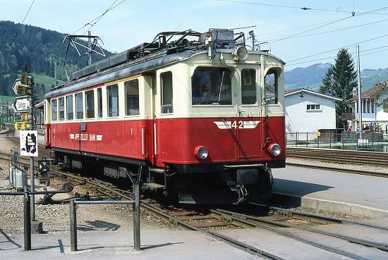 de Appenzellerbahn, na Suíça. A linha de 59,7 km com bitola métrica foi construída entre 1875 e 1912.