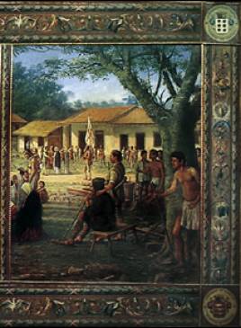 Detalhe de quadro (óleo sobre tela, 300 x 900 cm) existente no prédio do Museu dos Cafés do Brasil (antiga Bolsa Oficial do Café de