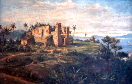 Fundação Pinacoteca Benedicto Calixto, retrata o que restou da incendiada capela de Nossa Senhora das Neves, no