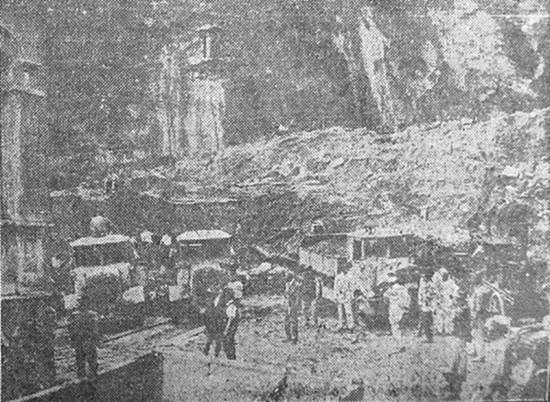 soterrando várias casas. O volume da terra deslocada pode ser facilmente avaliado com a verificação do clichê acima, comparando-se o edifício da