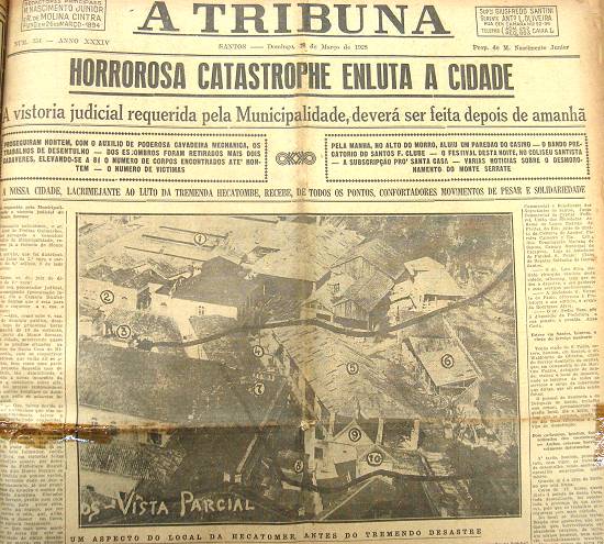 Legenda e foto: jornal santista A Tribuna, em 20 de março de 1928
