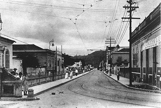 Na Rangel Pestana, note-se o canal quase junto das casas, num dos lados. A foto foi feita no cruzamento com a Avenida Senador Feijó: