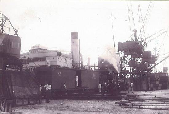 Trens desembarcam no porto, em 1958