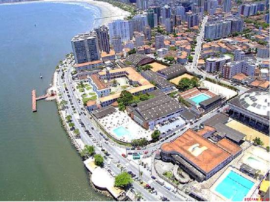primeiro plano, instalações dos clube de regatas Santista e Internacional: