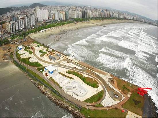 Praias Gonzaga e Boqueirão, tendo em 1º plano à direita a