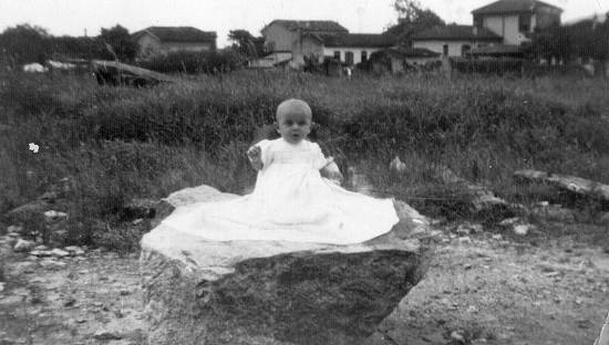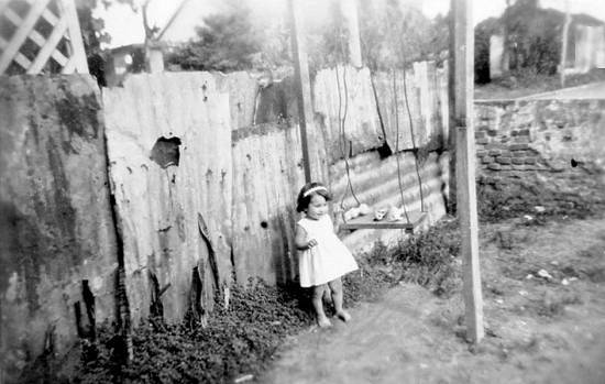 "Criança no terreno da Cia. Docas de Santos (ao fundo as residências da Rua Joaquim