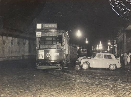 Em 4 de abril de 1952, o bonde aberto prefixo 108 e seu reboque prefixo 59