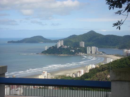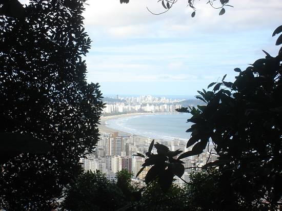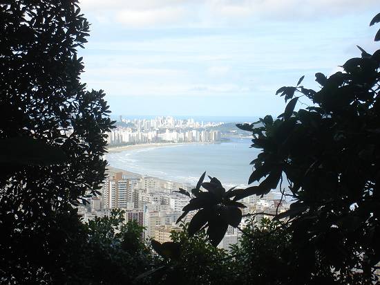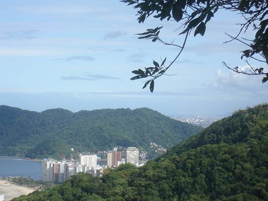 Novamente a orla praiana santista,l vista da encosta do morro, e ao fundo a orla de