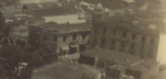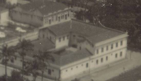 Teatro de Variedades, depois demolido, e à sua frente a edificação, ainda existente no século XXI, que chegou a abrigar o fórum santista: