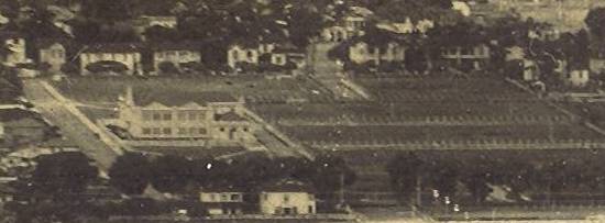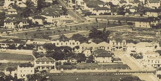 Voltando ao centro da imagem original, neste detalhe que tem na parte inferior a Avenida Bernardino de Campos (canal 2), vê-se o terreno da Praça Coronel Fernandes Pacheco,