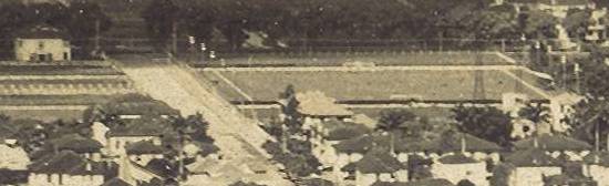 Imediatamente acima, o campo de futebol da City, primeiro de Santos e do estado de São Paulo a receber iluminação para jogos noturnos (em