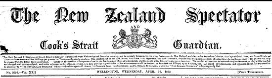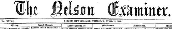 13 de abril de 1865 do jornal neozelandês Nelson Examiner and New Zealand Chronicle, volume XXIV, edição 44, página 3: