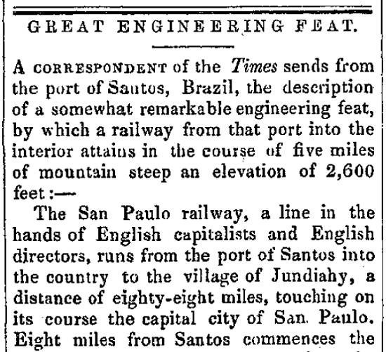 construção pelos ingleses da imponente ferrovia São Paulo Railway não poderia passar despercebida, sendo comentada antes