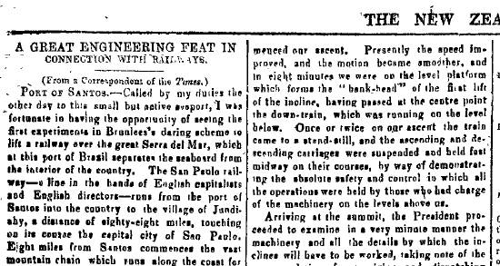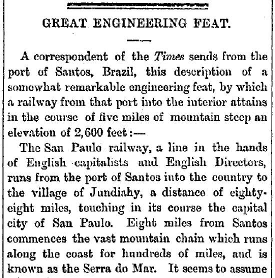 Brunlees para levantar uma estrada de ferro sobre a grande Serra do Mar, que nesta parte do Brasil separa o litoral do interior do país. A São Paulo