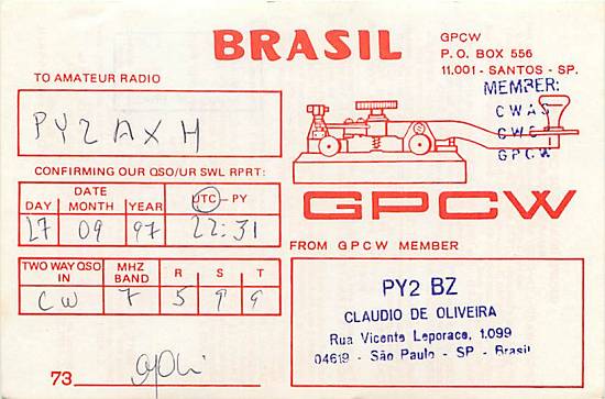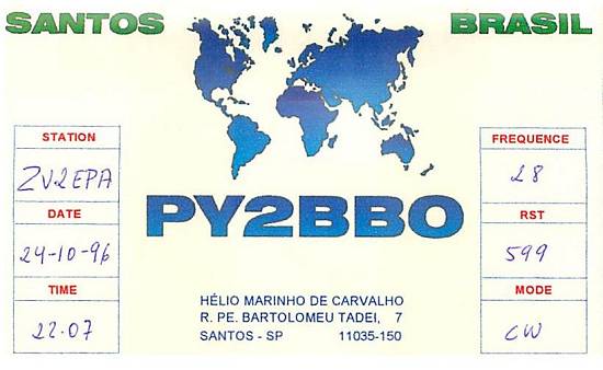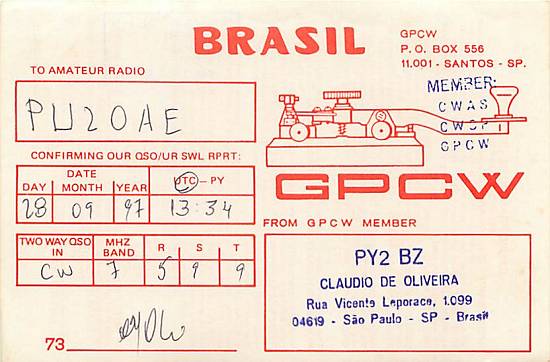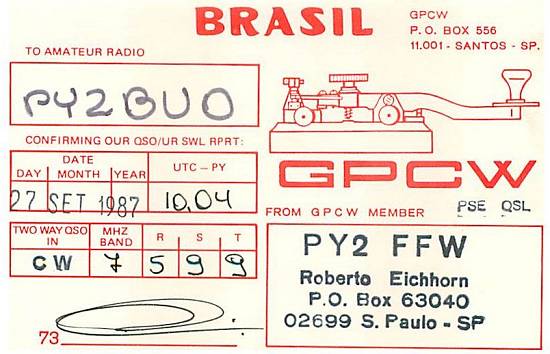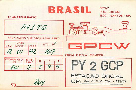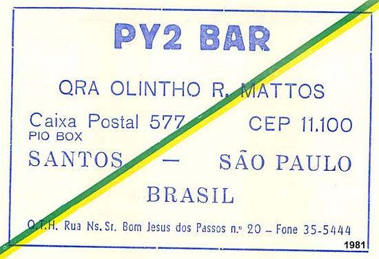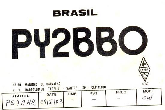 de contato radiofônico (QSO) com radioamadores santistas, mantidas no Arquivo Histórico do Radioamadorismo Brasileiro (acesso: 30/12/2012):