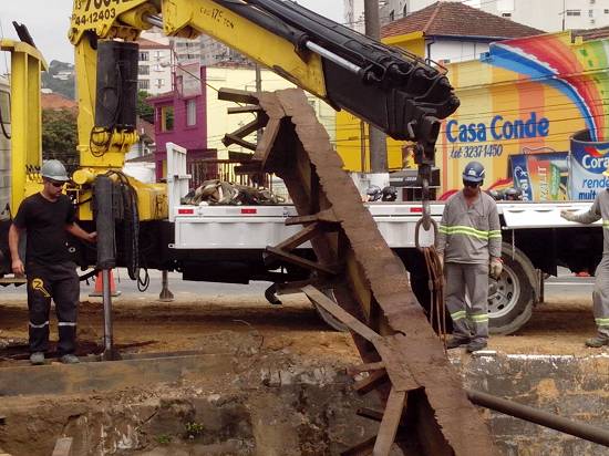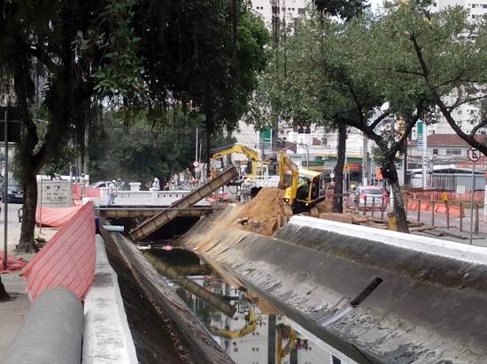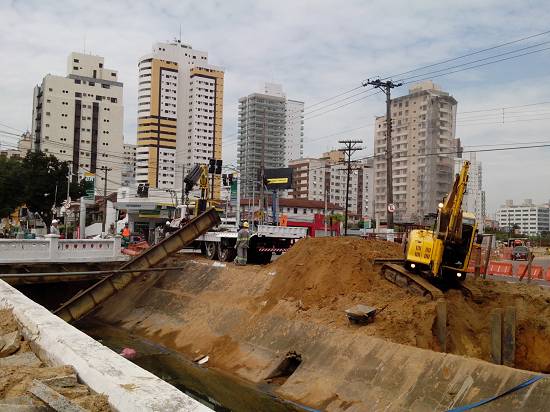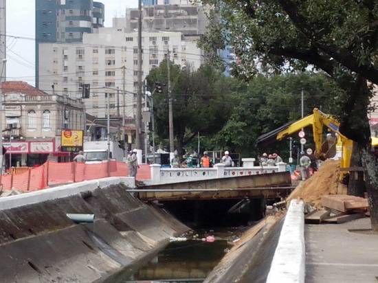 No flagrante, o final do antigo pontilhão ferroviário sobre o canal 2 (Avenida Bernardino de Campos):