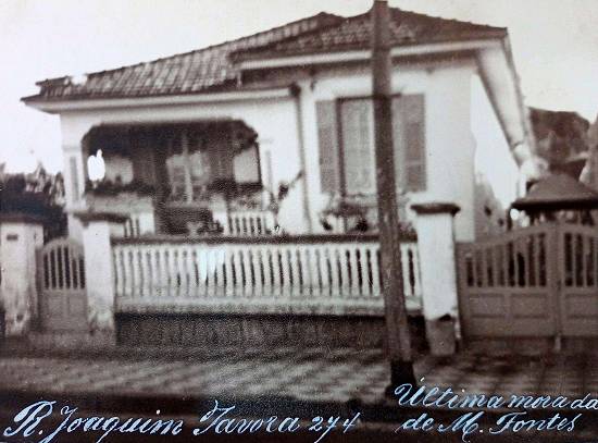 Rua Joaquim Távora, 274, em Santos - última morada de Martins Fontes (N.E.: é citado em outra obra o endereço com número 268, cuja construção é diferente):