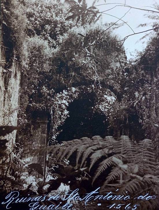 Datada de 1565, a instalação de Santo Antonio do Guaibe, ainda permanece em ruínas em Guarujá, no canal que liga Santos a Bertioga: