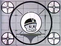 'Carta' (tela) de ajuste de recepção da TV Tupy TV - Pelo porto de Santos foram desembarcados muitos dos equipamentos pioneiros para emissoras de rádio e