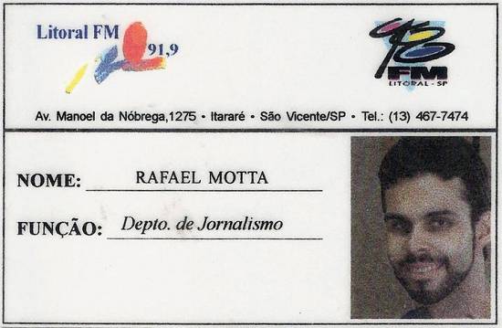 como atendente de telefone em programas da emissora, no período da tarde; nós nos formamos juntos em Jornalismo pela UniSantos, em 2000, e creio que ele ainda trabalhe como radialista na Rádio Guarujá FM); locutores